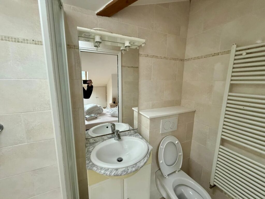 Une salle de bains avec WC, accessible depuis le palier